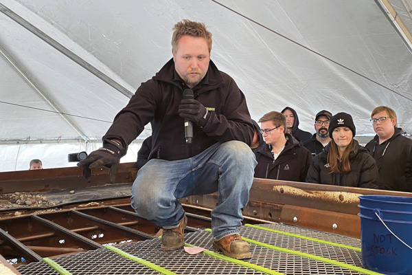 Matthew Armstrong, business development analyst at Major, led a screen media changeout seminar last month at General Equipment & Supplies’ Aggregate Expo in Fargo, North Dakota. Armstrong gave a hands-on demonstration about “do’s and don’ts,” as well as best practices to safely replace screen media. During the seminar, which was held outdoors, Armstrong enlisted the help of audience members with aspects of the changeout.
