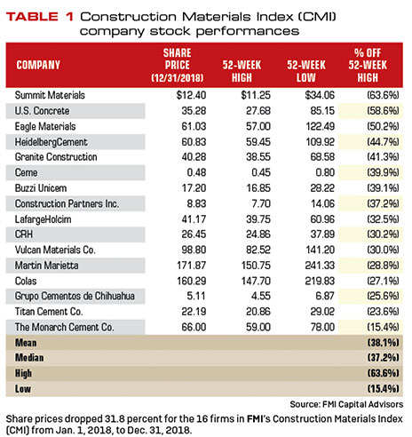 Three of the 16 CMI companies – Summit, U.S. Concrete and Eagle Materials – experienced market cap losses in excess of 50 percent.