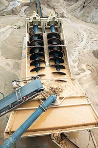 John Bennington, product manager for the Superior Industries Washing & Classifying Division, is an industry veteran with hands-on experience in every sand-washing method. “The traditional sand screw does its job, but it requires the extra real estate for drying stockpiles,” Bennington says. “Material with up to 25 percent moisture content will need one to two weeks of drying time. Operations need a plan to handle the water runoff from the stockpiles. Plus, the wet sand causes excessive wear and tear to tires and components.”