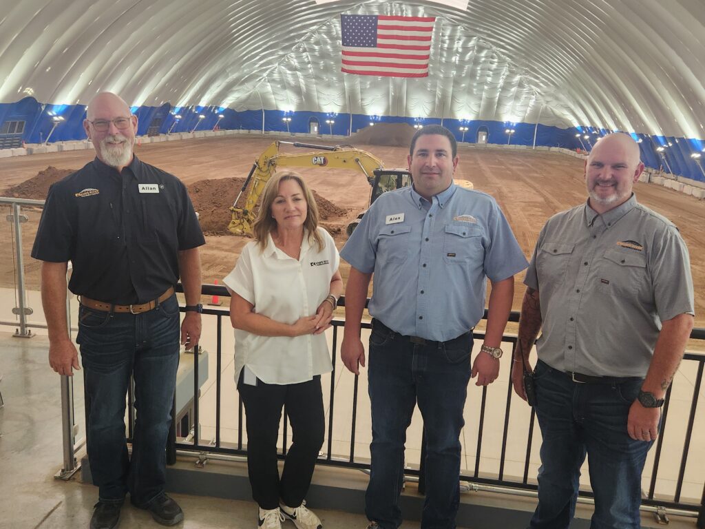 The training center’s heated dome is 200 ft. wide and 400 ft. long. It includes a dirt arena and a concrete viewing platform.
