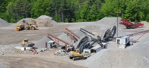 The Alfred Plourde Parkway site has been operated since 2009, and John says about 25 years of reserves remain. Equipment at the site includes a Kolberg-Pioneer jaw crusher; two KPI-JCI cone crushers; KPI-JCI screens; two Volvo L220G wheel loaders; two Volvo excavators; a Volvo EC290B LC excavator with a 6,000-lb. hydraulic breaker; and two Volvo A30 articulated haul trucks. On occasion, the site also employs the use of tracked portable plants – a KPI-JCI GT200DF portable cone crusher; a Komatsu BR550 portable jaw crusher; and a Terex Finlay 693+ Supertrak portable screening plant.